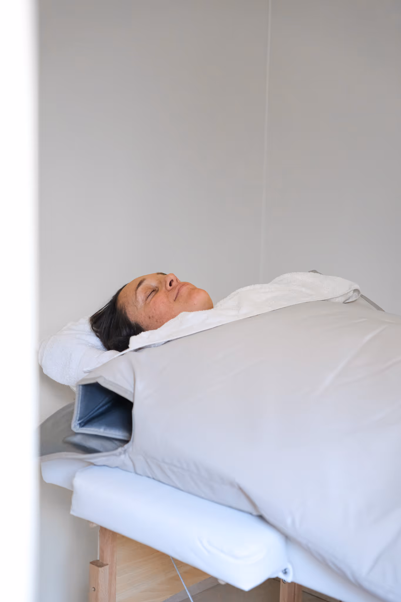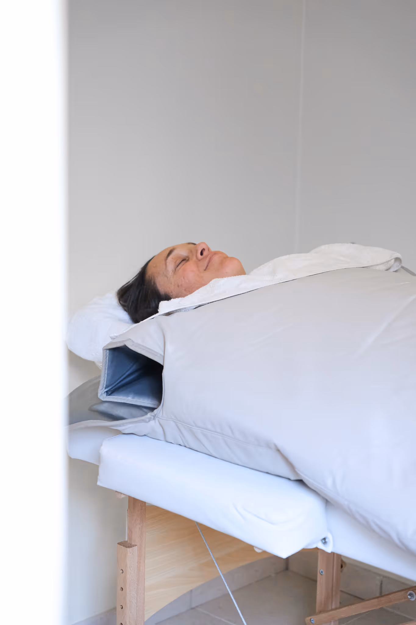 Tijdens de FIT Body Wrap (Far Infrared) behandeling lig je in een speciale wrap die met infraroodstralen je lichaam verwarmt. Dit bevordert vetverbranding, ontspanning en ontgifting via transpiratie.
